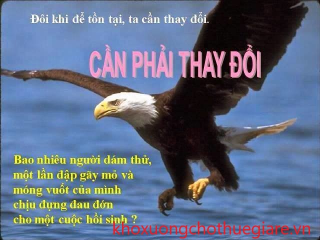 Trong cuộc sống và kinh doanh thì nguyên tắc này của đại bàng chính là bản chất của chiến lược đại dương xanh, như ông tổ của ngành Marketing hiện đại Philip Kotler đã nói:" Chỉ làm những điều chưa ai làm, nghiên cứu tiểu ngạch, tiểu vùng ít cạnh tranh, như một mình một đường, một mình một ngựa cũng rình rập những hiểm nguy mà khi nguy cấp cũng chỉ có thể tự mình cứu mình, không thể trông cậy vào ai, vì vượt tầm và lẻ loi". Bản thân tôi cũng luôn cố gắng với con đường cho thuê kho quận 7 và luôn cố gắng cho sự thành công của riêng mình.